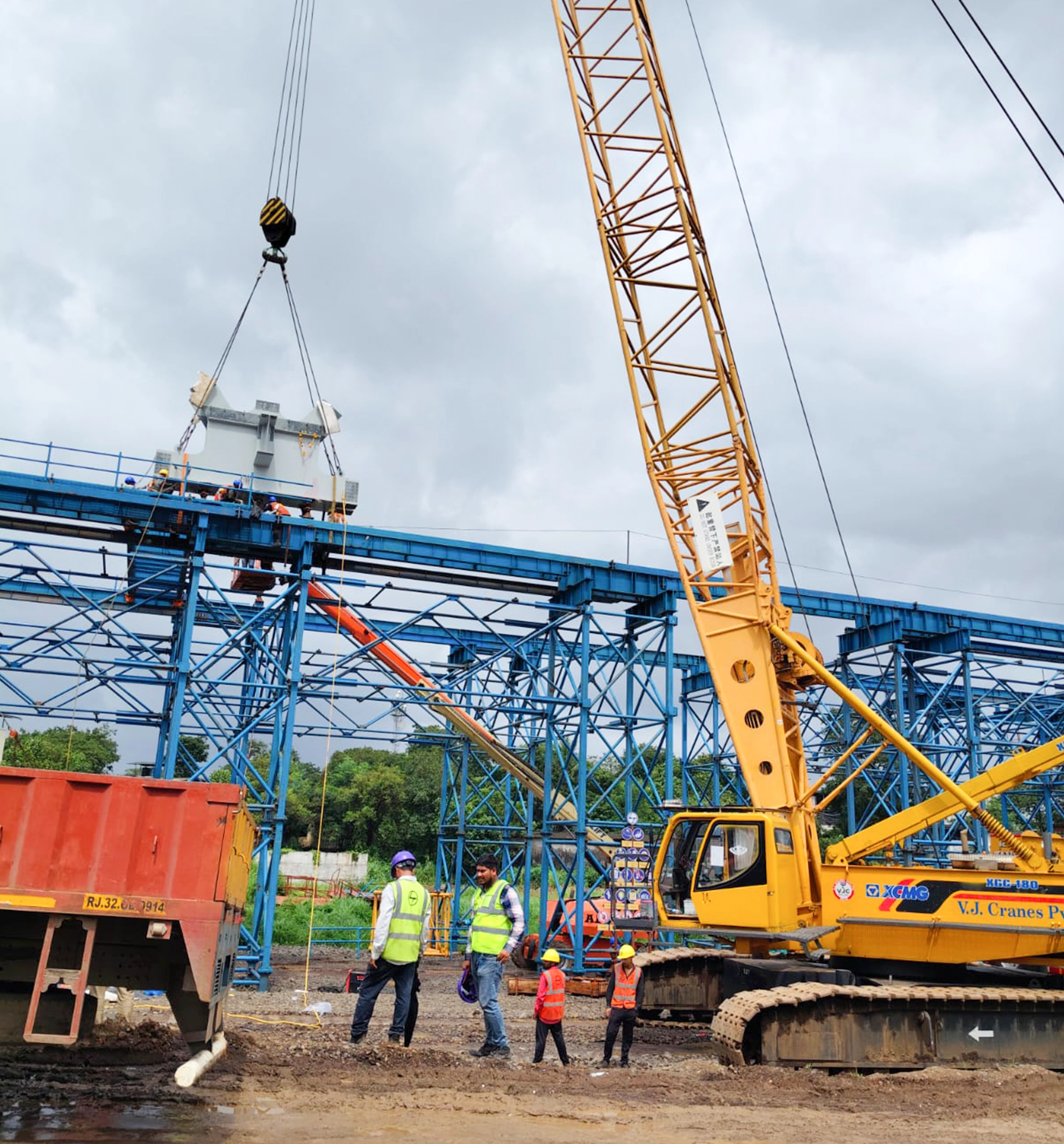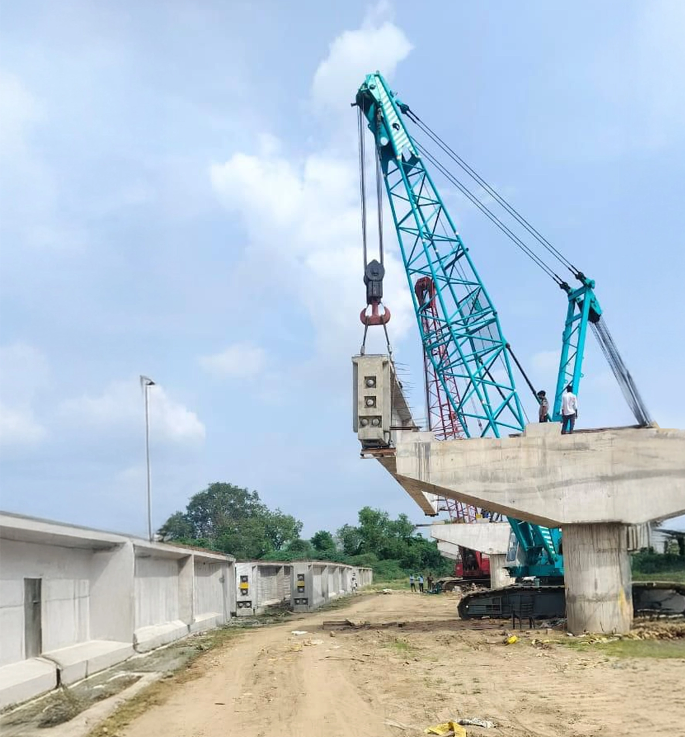 • 140 MT girder erection completed using our Sumitomo 150T crane, backed by the Hitachi KH1000.